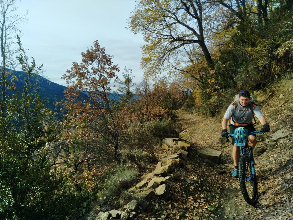 Quand la neige et l’eau font que les sentiers français sont trop boueux, direction le sud. Départ de Biescas pour monter à Gavin et la face sud pour rejoindre le circuit 26-valle-de-san-bartolome. Montée en piste, sentier, portage et descente dré dans le pentu. 28km pour un petit 1200 de D+. Fred, Christian, Jacques et Fred