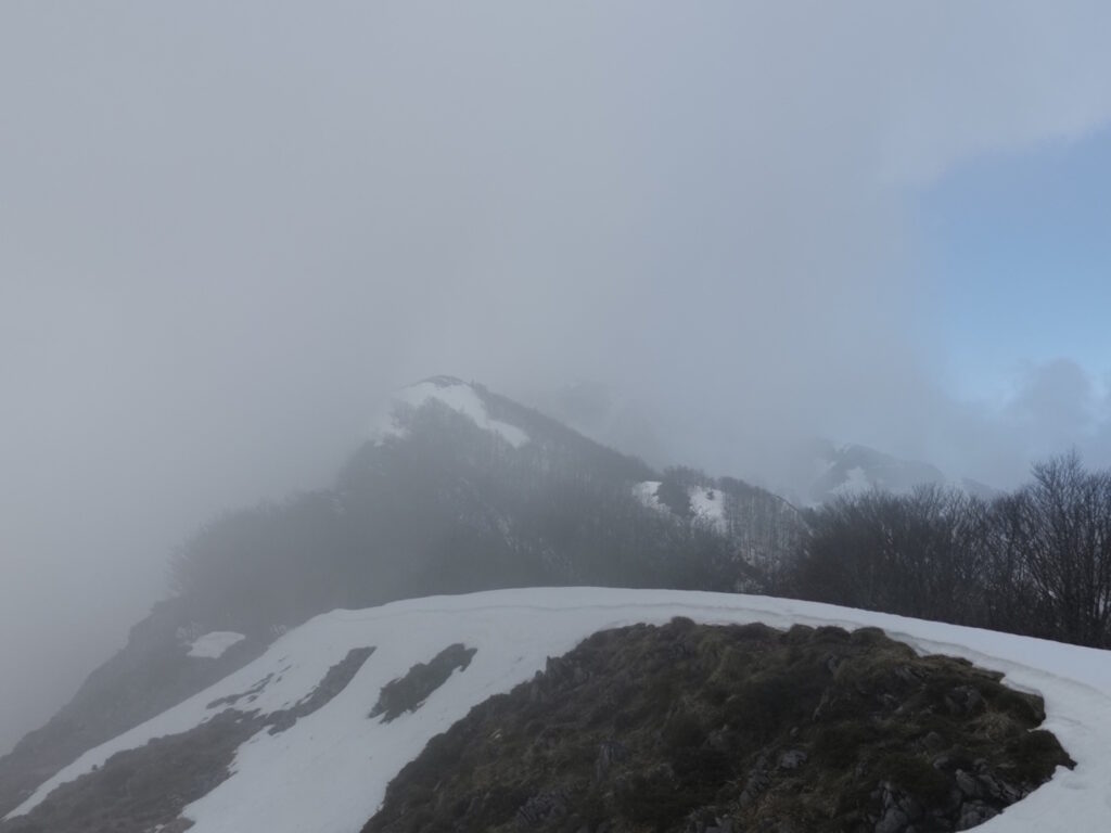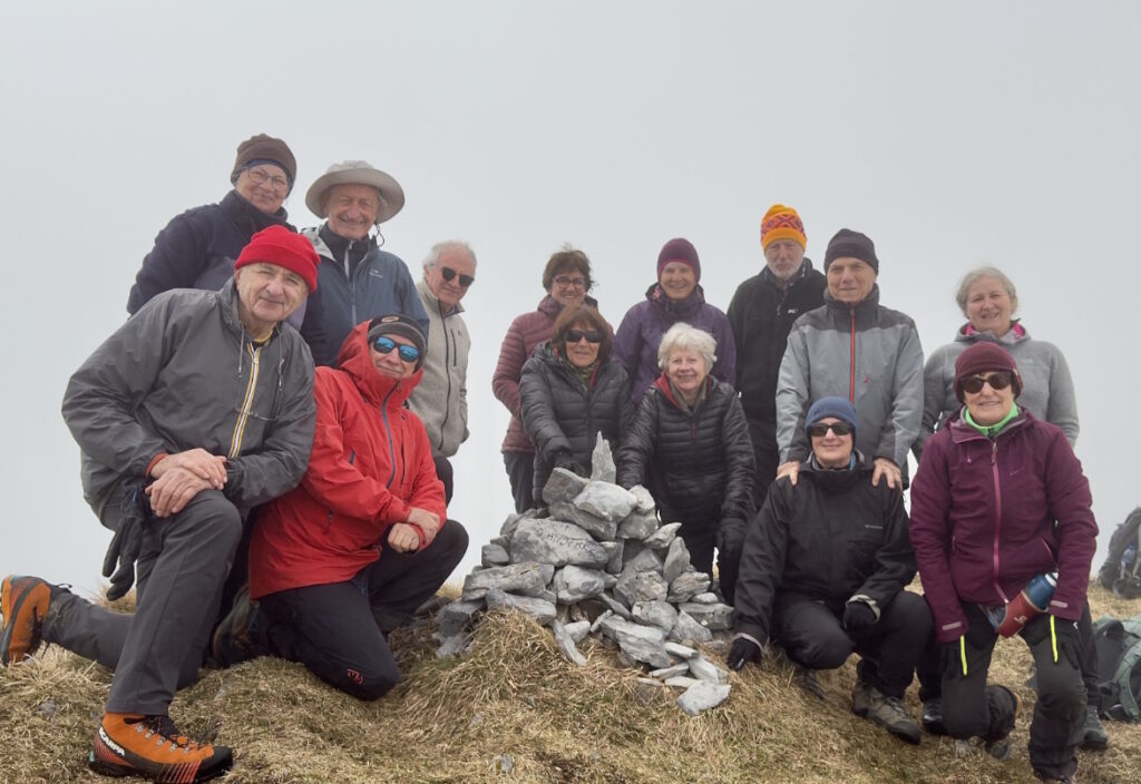 Nous sommes 14 sur le parking d’Auchan, dont 4 transfuges du N2, avec, exceptionnellement, une presque parité 6-8. Je retrouve avec plaisir notre ami Henri-Pierre dit « Albert » un ancien de Pyrénéa (première inscription en 1964) et quelques anciennes d’une époque mémorable. Notre objectif est, compte tenu des bonnes prévisions météo, d’effectuer en boucle un itinéraire empruntant la crête Soum d’Andorre- Soum de Conques (1759 m). Le départ de la randonnée se situe au fin fond de la vallée des Bergons après le village de Salles avec un dernier kilomètre moyennement carrossable mais que les voitures pas trop « bas de caisse » peuvent emprunter mais avec attention. Nous entrons dans la Réserve du Massif du Pibeste-Aoulhet dont le mammifère le plus emblématique est le Mouflon de Corse introduit en 1978. A proximité du parking se situe l’aérodrome nommé « Altiport d’ Argelés » mais, si on veut des infos plus précises, il vaut mieux taper « Altiport du vallon des Bergons » sur votre navigateur. La piste, en herbe, fait 320m !!__Après 300 m vers l’Ouest, nous rejoignons, à droite, le GR 101 que nous allons suivre sur la première partie de notre parcours. C’est d’abord une belle piste carrossable à laquelle fait suite , à la cote 1260, un chemin qui monte dans l’estive. A la cote 1295 nous laissons, à gauche, la possibilité d’une montée directe vers la cabane d’Andorre (que nous emprunterons au retour) et nous continuons à suivre le GR 101 que nous quittons à la côte 1385 pour rejoindre plein ouest le col d’Andorre (1443 m). Pendant toute cette période, le beau temps est au rendez-vous, mais les montagnes environnantes ont tendance à s’encapuchonner de gros nuages. A notre arrivée au col, il faut se rendre à l’évidence : la crête est, en partie, enneigée et le brouillard limite le paysage et la vision de l’itinéraire. La cabane d’Andorre nous tend les bras mais nous préférons poursuivre notre rando à l’aide du GPS et tenter, au moins, l’ascension du Soum d’Andorre. Notre cheminement est facilité par le fait que la crête définit la limite entre pentes herbeuses très pentues au sud et, au nord, des pentes boisées couvertes d’une neige humide et non portante. L’objectif est donc de suivre cette limite c’est-à -dire l’intégralité de la crête. La trace du GPS et la présence de nombreux cairns lors des passages délicats nous permettent d’atteindre le Soum d’Andorre sans avoir vraiment foulé la neige. Après 2h40 de marche il est temps de se sustenter et d’étudier la suite du programme. Pas de panorama à se mettre sous la dent ! Et la poursuite de la rando vers le Soum de Conques est compromise compte tenu de l’enneigement et des conditions météo. Nous rebroussons chemin, en gardant toute notre attention dans les quelques passages de désescalade sur la crête, et rejoignons l’itinéraire de montée en passant à l’Ouest de la cabane et en empruntant l’éperon enherbé que nous avons évité ce matin. Pour le retour et notre arrêt rafraîchissement, Albert nous conseille l’Hôtel des trois Vallées à Lugagnan qui s’est transformé au fil des années en musée du Tour de France grâce à Jean-Pierre Souverbielle, patron de l’hôtel. On découvre la collection privée d’un passionné du vélo et du Tour de France riche de vélos (dont celui de Laurent Fignon), de maillots (120 maillots dédicacés) des vainqueurs du Tour de France et de vieilles photos… On n’a pas été déçu du voyage!!(cette balade est, peut être, de niveau 2!). Auguste