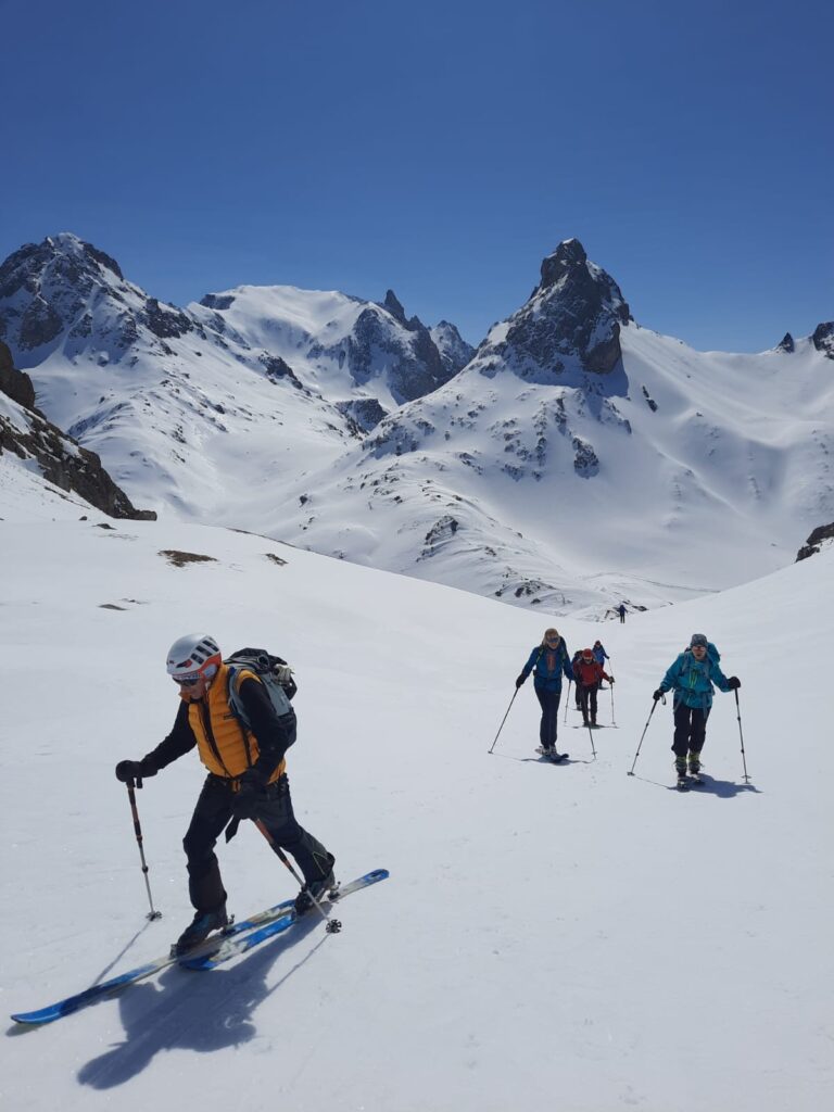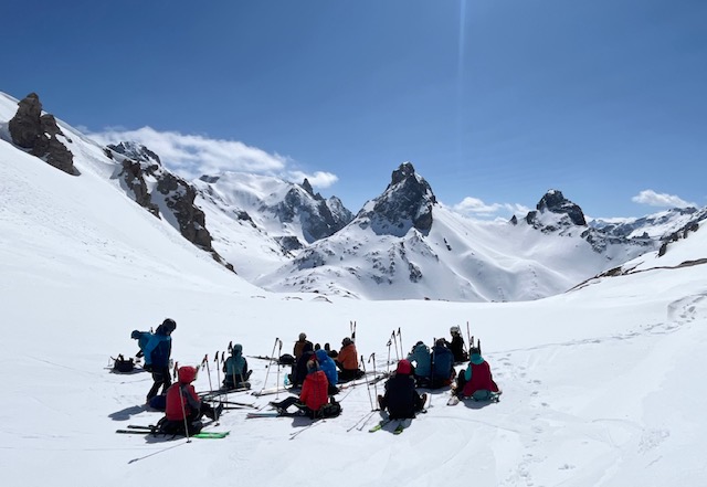 > Raid Maurienne / Jour 3 > « Col de l’Aigle » / 2665m» non loin du Mont Thabor > 940m / 15km > Une belle journée, plus fraîche que la veille avec un petit vent > régulier, mais sous un beau soleil L’itinéraire sera modifié en la > présence de militaires en manœuvre sur ce beau site. Le collet de La > Fourche (au dessus du lac des Cerces) sera abandonné pour une variante > plus facile vers de pic de l’Aigle. Le spectacle est somptueux. En > début d’après midi la météo se dégrade un peu, avec l’arrivée de > quelques nuages. Présage (?) d’une journée moins agréable demain.