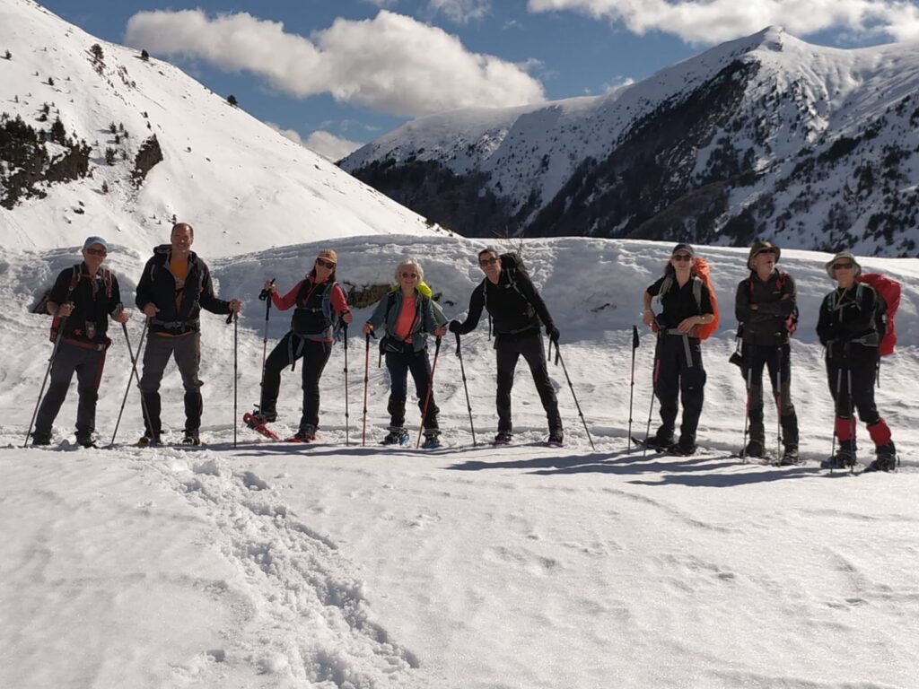 Notre séjour raquettes à Aneto restera un très beau souvenir, mêlant sport, nature et convivialité. Nous avons été accueillis à la Casa Moline, un établissement familial où nous avons été reçus « comme à la maison ». L’accueil chaleureux, la disponibilité de nos hôtes et les repas copieux ont largement contribué à la réussite du séjour. Chaque retour de randonnée était un vrai moment de partage et de réconfort. Si la première journée s’est déroulée sous la pluie, la suite du séjour nous a offert une météo très ensoleillée. Les 11 raquettistes et les 12 skieurs ont ainsi pu profiter pleinement de magnifiques paysages variés et d’une neige fraîche idéale pour la pratique de nos activités. Au-delà des parcours et des panoramas, c’est surtout l’esprit du groupe qui restera gravé dans nos mémoires : bonne humeur, solidarité et plaisir d’être ensemble. Merci à toutes et à tous d’avoir fait de ce séjour une belle aventure humaine et à Patrick et Didier d’avoir été à l’initiative de ce projet. Lydie