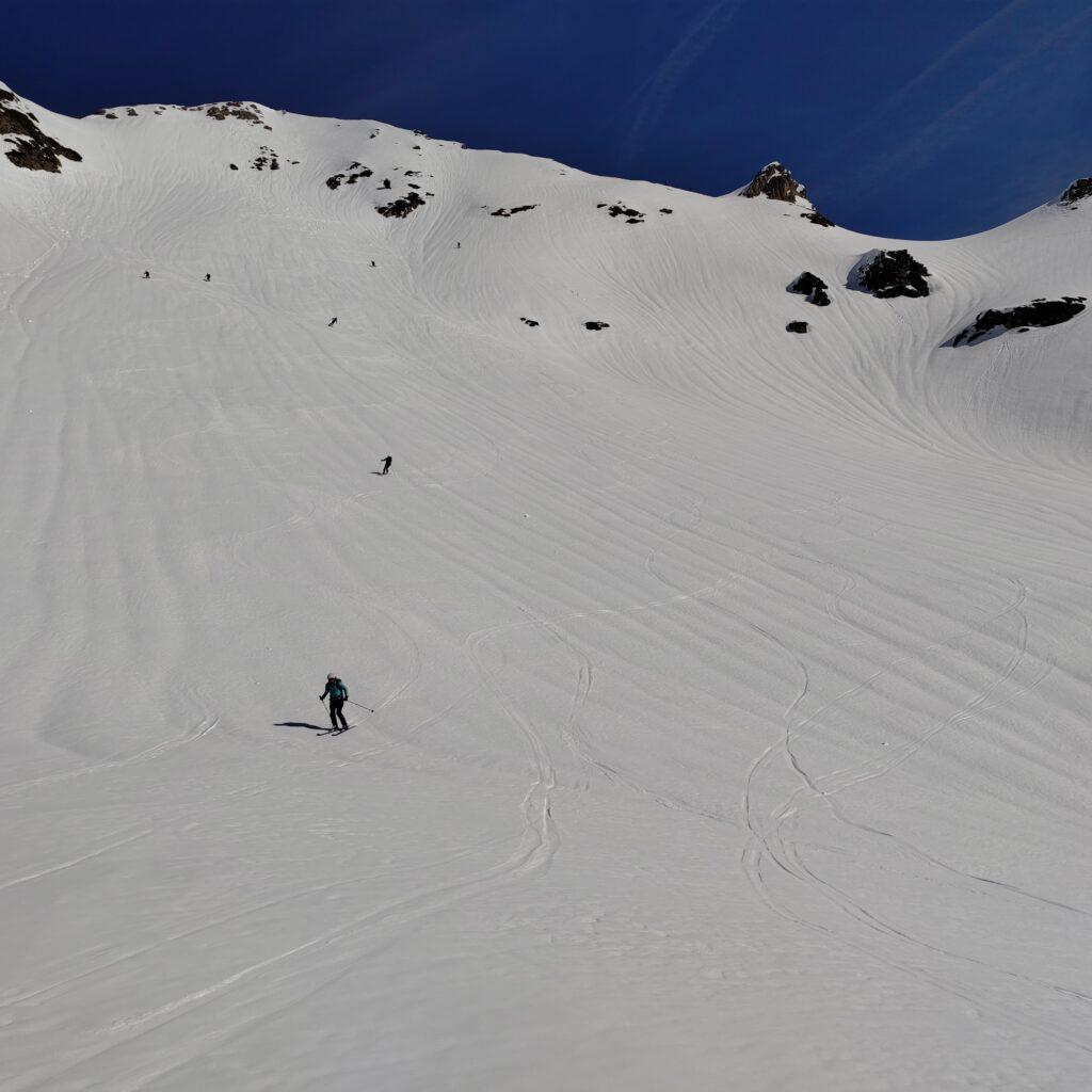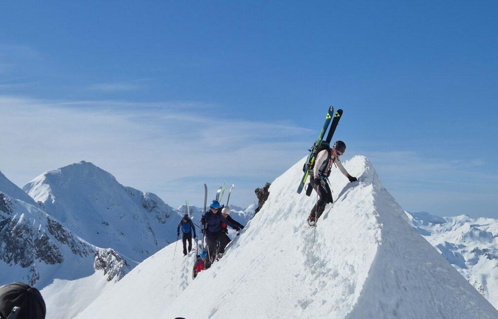 Pour tous (sauf débutants) – Ossau – Direction le col de Bious que nous descendons sur une neige, disons bruyante sur 250m jusqu’à La Couroude. Repeautage pour remonter le ravin d’Astu par sa rive gauche. De là, plein sud vers Picos de Baguer pour ensuite longer la crête frontalière et atteindre l’arête nord du Pic de Canaourouye au-dessus du col de Houer. Pique-nique au sommet avant la descente classique par le Plaa de la Gradillère.